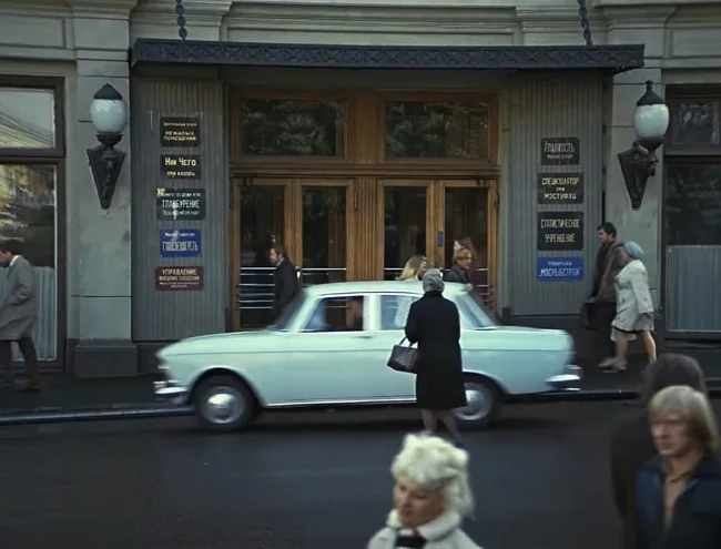 На здании в «Служебном романе» можно заметить вывески с неожиданными названиями учреждений