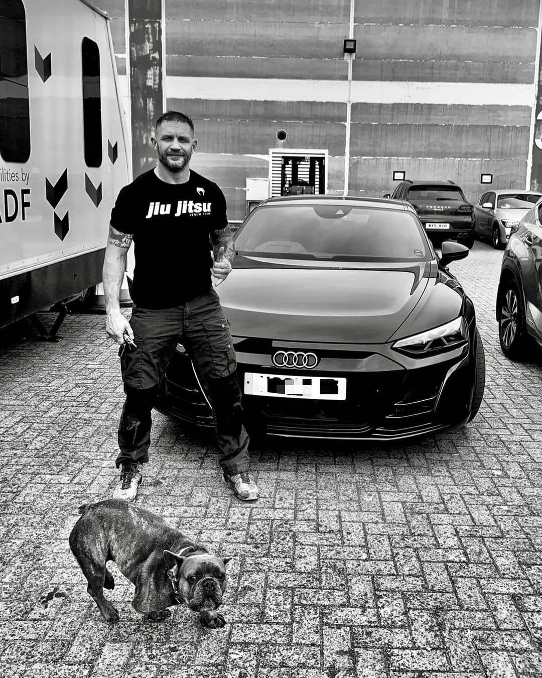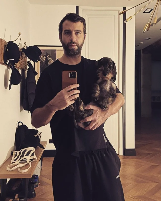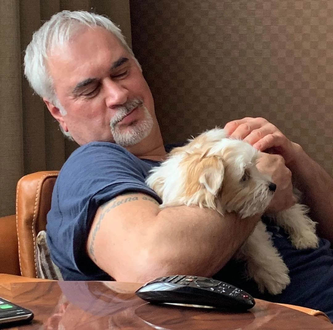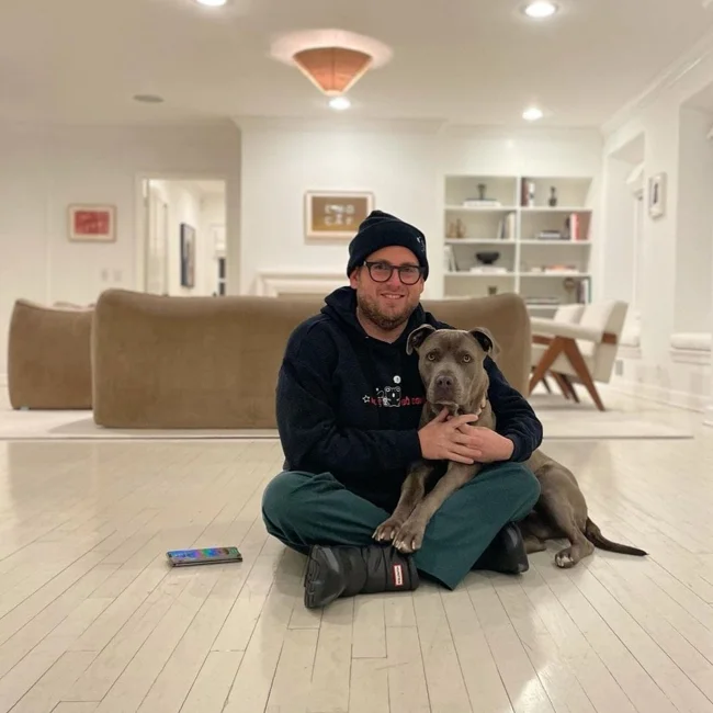 И его французский бульдог по кличке Блу.