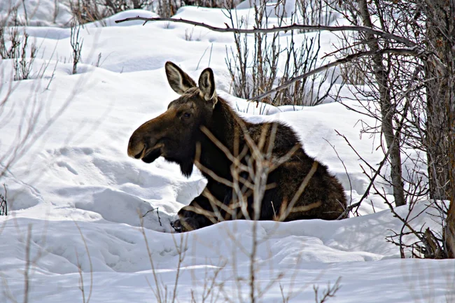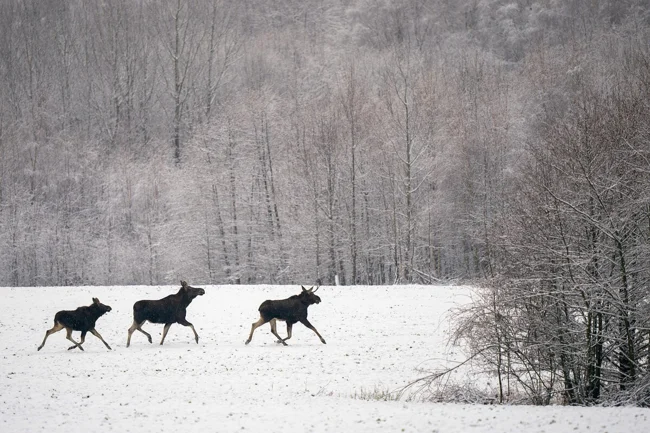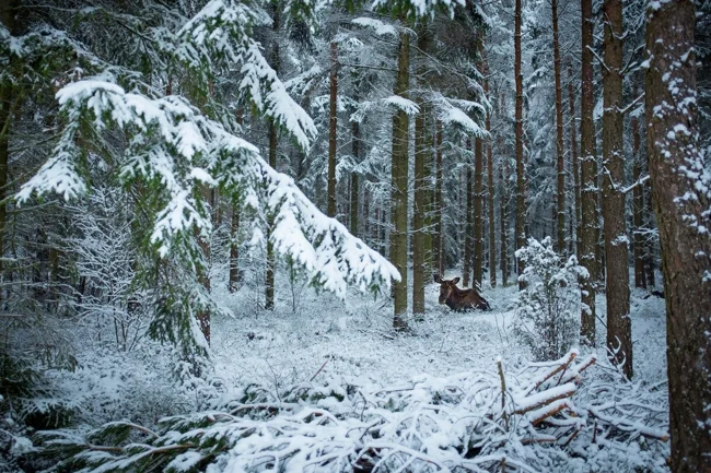 Наст неимоверно твёрдый, а лапы лося ничем не защищены. Да, длинные. Да, могут преодолевать большие снежные наносы. Но как только случится оттепель, а вслед за ней снег покроется настом, лесной гигант уже не сможет выбраться из сугроба без потерь. Благо, что лось хорошо чувствует перемены. Заподозрив неладное, он тут же постарается углубиться вглубь лесного массива. Там постарается найти площадь с густым валежником и заляжет на дно!