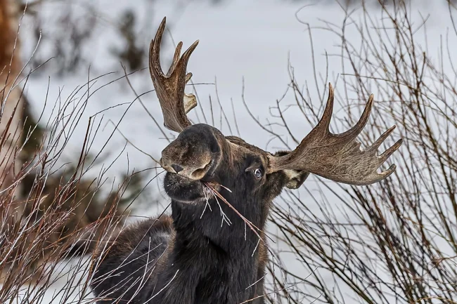 Зимний рацион лося состоит из коры деревьев. Когда мороз стукает так, что отгрызть кору становится проблематично, наш герой переходит на веточки. С одной стороны — хорошо, ведь по питательности и калорийности кора им проигрывает. Но с другой — плохо. Обладая поистине богатырской силой, лось легко делает заломы хвороста. Только вот рикошетят ветки сильно! Именно по этой причине зимой можно встретить лося с подбитым глазом — эдакий пират.
