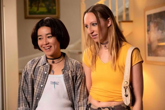 Взрослые подруги изображают самих себя и то, какими они были в школьные времена. Правда, при этом их окружают современные подростки.