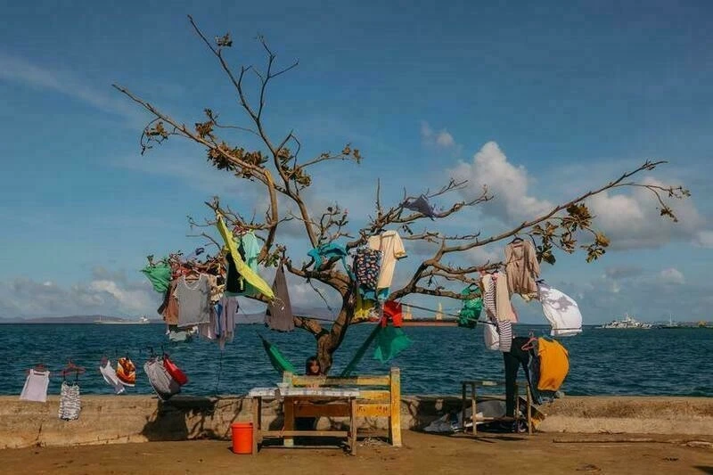 Девушка сушит вещи на дереве, так как осталась без дома после тайфуна «Раи» на Филиппинах в декабре ![]()