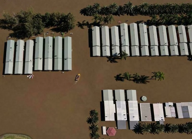 Жилые дома, затопленные рекой после продолжительных дождей, недалеко от Сиднея в марте