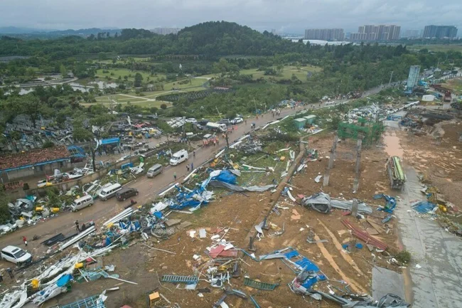 Последствия торнадо, обрушившегося на Ухань в середине мая