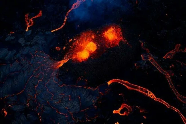 Апрель: вид на вулкан Фаградальсфьядль в Исландии, который не извергался примерно 6000 лет