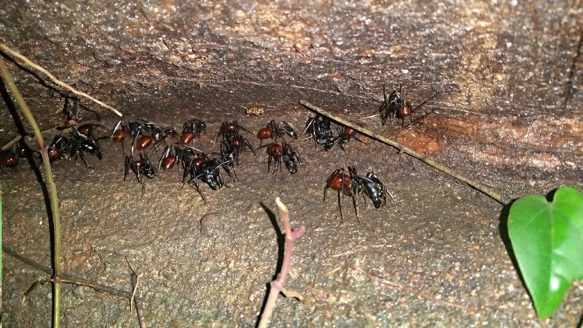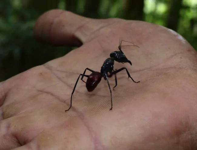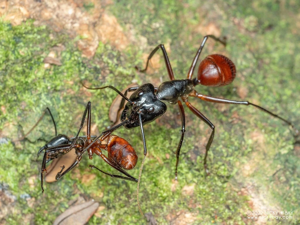 Гигантский лесной муравей занимает почти ту же экологическую нишу, что и наши рыжики. В Таиланде, Малайзии, Индонезии и на Филиппинах его можно встретить в любом типе леса — от туманных горных лесов до низинных торфяных болот. Отличий от насекомых тоже полно, и все они связаны с огромными размерами. Гигантский лесной муравей — один из самых больших муравьёв в мире.