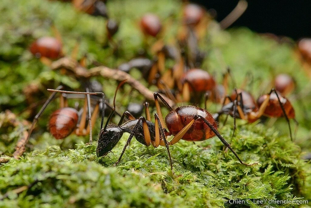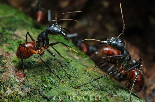 Видели рыжего лесного муравья? Это работяга длиной в 7-8 миллиметров, на котором держится экосистема леса. Он и пища многих видов, и защитник деревьев, и вредитель в одном лице. В Юго-Западной Азии обитает почти такой же муравей. Только он в 4 раза больше и обожает ритуальные поединки!