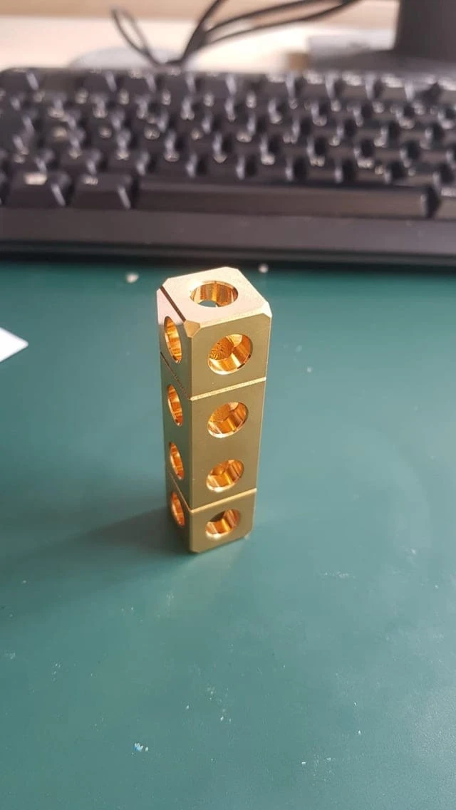 Странный металлический прямоугольный параллелепипед с отверстиями