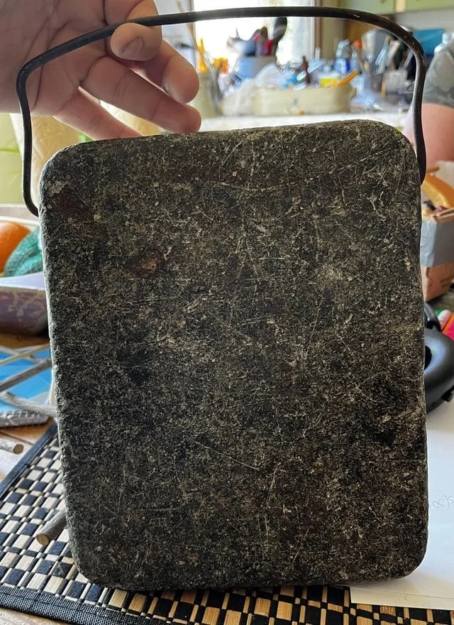Маленькая грелка для кровати. В неё подкладываются угли из костра, а затем она на некоторое время оставляется между простынями.