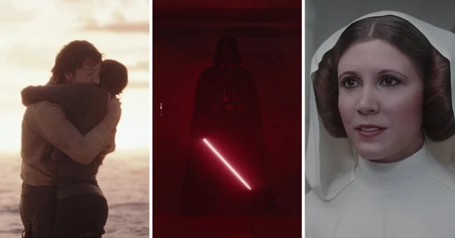 Самопожертвование повстанцев/появление Дарта Вейдера/появление принцессы Леи.