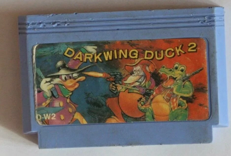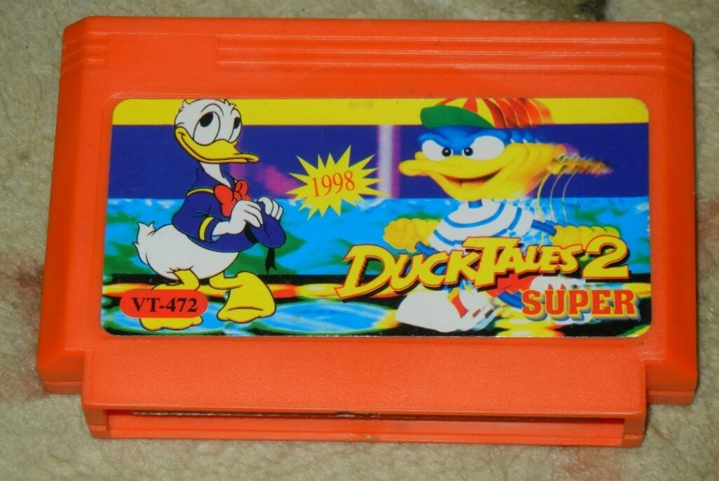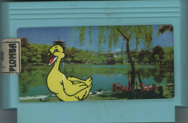 И как бы это странно ни звучало, но начать я бы хотел не с пиратского, а с лицензионного картриджа от компании "Steepler", который можно было купить в официальном магазине "Dendy". Перед вами игра "Утиные истории". Но вместо Скруджа и других героев мультсериала на картридж налепили картинку с обычной уткой. И это преподносилось как лицензия.
