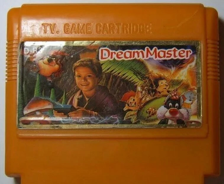 Dream master - это весьма забавная игра про мальчика, который попал в мир снов, и который способен взаимодействовать с животными, влезая в их шкуру. Но что мы видим на картридже? А видим мы юного Элайджа Вуда и персонажей известных мультфильмов, которые никак не причастны к данной игре. Да, и кстати игра носит название "The little Nemo: Dream Master", а не просто "Dream Master". Игра вышла по мотивам одноименного мультфильма, поэтому Элайджа Вуд здесь тоже пририсован каким-то левым боком.
