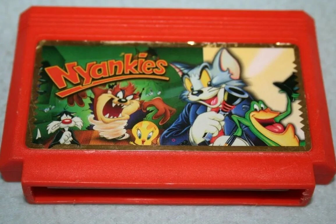 Наверняка, многие из вас играли в игру "Nyankies" (Rockin Cat), где нам предстоит поиграть за кота с выдвигающейся многофункциональной перчаткой. Но на сам картридж непонятно зачем налепили Тома, Тасманского дьявола, Сильвестра и Твитти. Причем тут они?