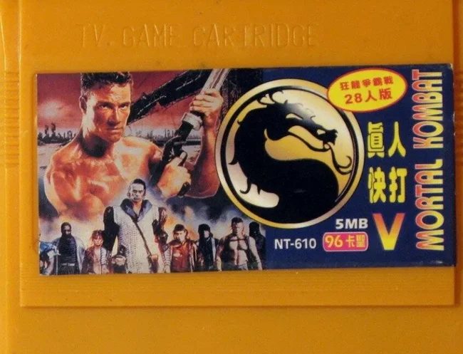 Ну и конечно же на картриджах с играми "Mortal Kombat" частенько изображались абсолютно левые персонажи, будь то Жан Клод Ван Дамм, Зеленый Шершень, Брюс Ли, герои игры "Street fighter" и др.