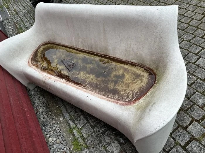 1. В этой скамейке скапливается вода во время дождя