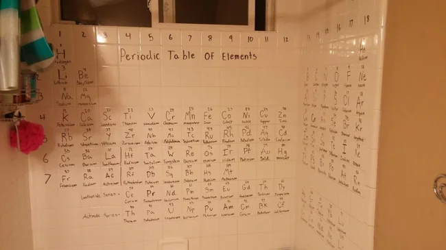 6. Моя дочь нарисовала таблицу Менделеева в душе. Похоже, она любит химию
