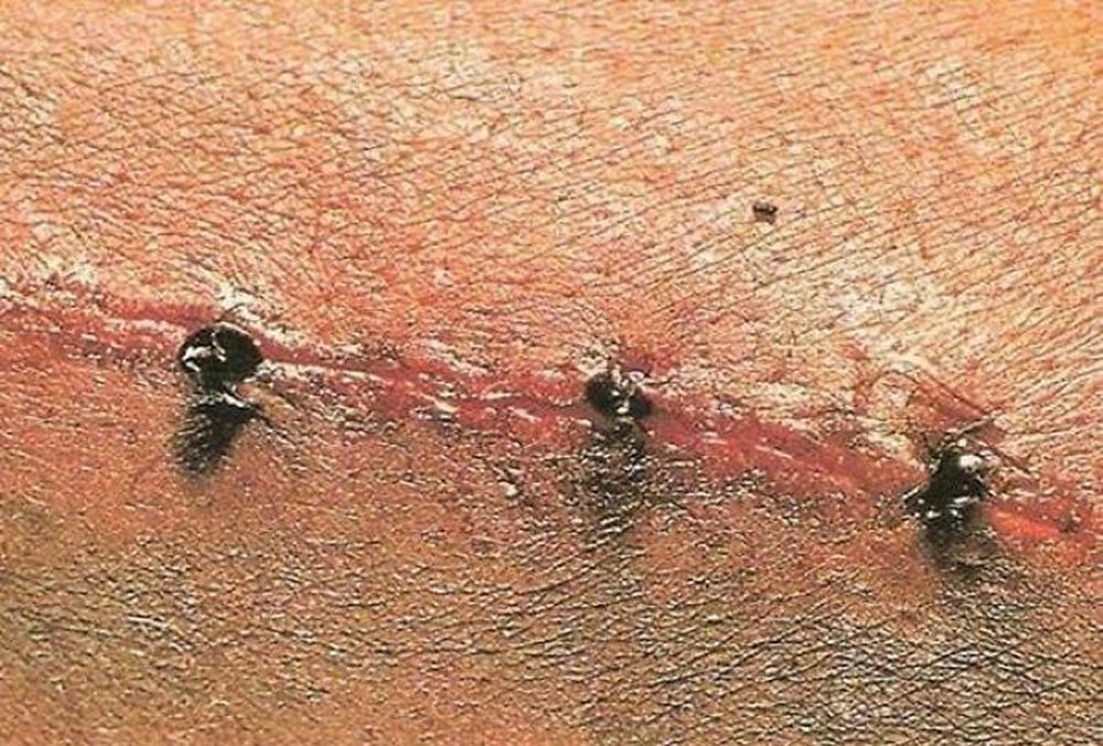 21. У кочевых муравьев такие сильные челюсти, что некоторые народы используют их вместо швов — они заставляют муравья вцепиться в кожу, а затем просто отламывают тело