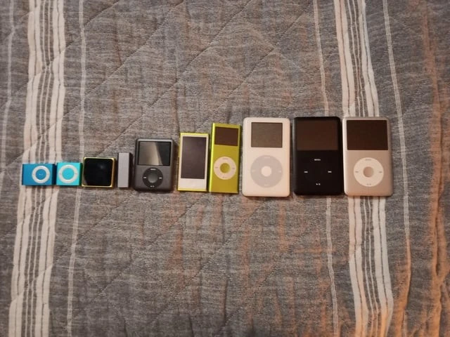 Несколько поколений портативных медиапроигрывателей. Они все работают