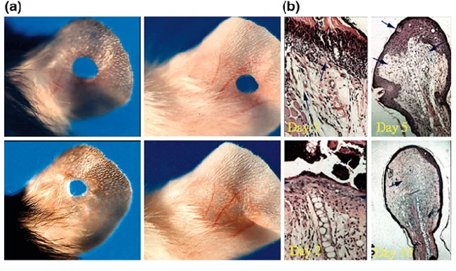 А способность к регенерации мышам обеспечивают особые гены, которые входят в состав клеток ткани мозга и соединительной ткани. Принцип их действия напоминает развитие эмбриона. Ген направляется в повреждённую область и наращивает её с восстановлением функций.