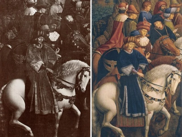 Картина относится к нижней левой панели Гентского алтаря. Написана между 1430 и 1432 годами. Панно было украдено в 1934 году и до сих пор не найдено. На фото слева — оригинал, на фото справа — реплика.