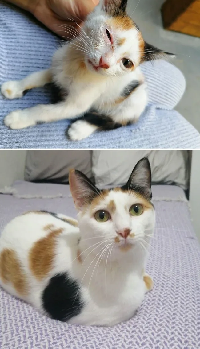 21. "Когда я нашла эту кошку на улице, она умирала. Ветеринары говорили, что она не выживет, но она оказалась бойцом!"