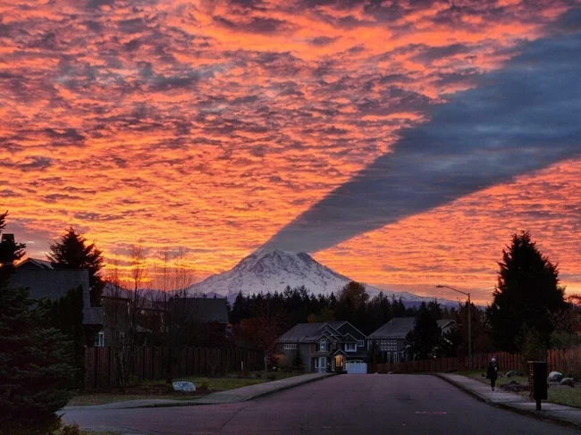 14. Тень на облаках от вулкана Рейнир