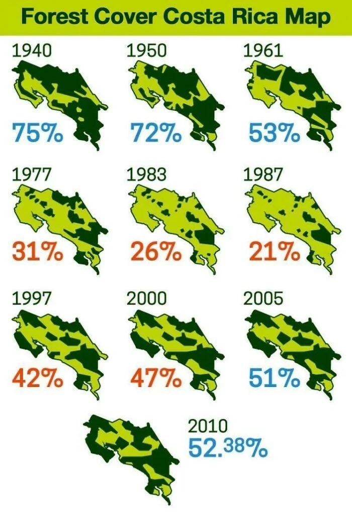 2. Карта, отражающая изменение лесного покрова Коста-Рики