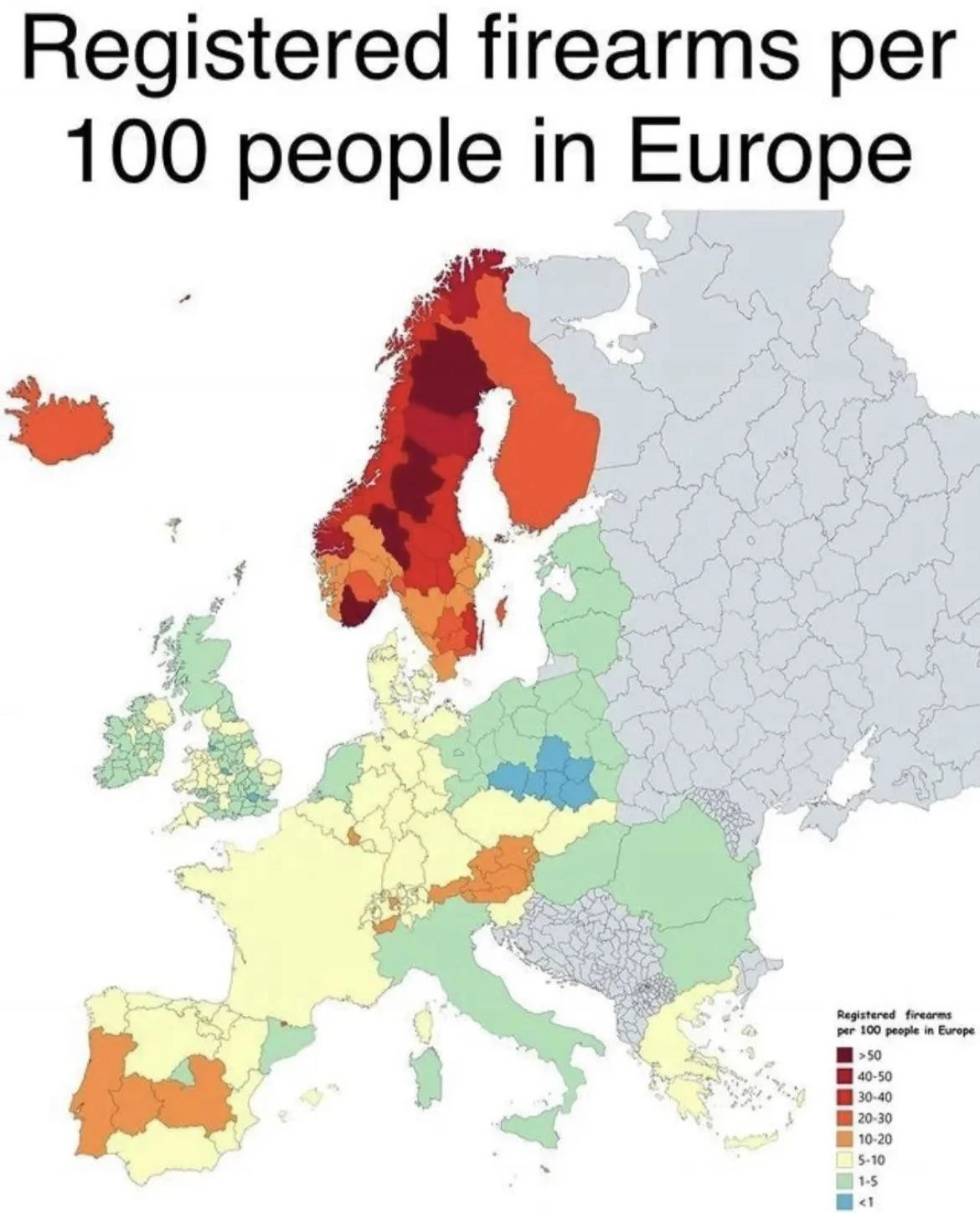 32. Количество единиц огнестрельного оружия на 100 человек в Европе