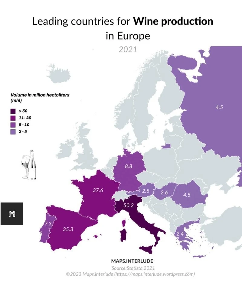 27. Ведущие страны по производству вин в Европе