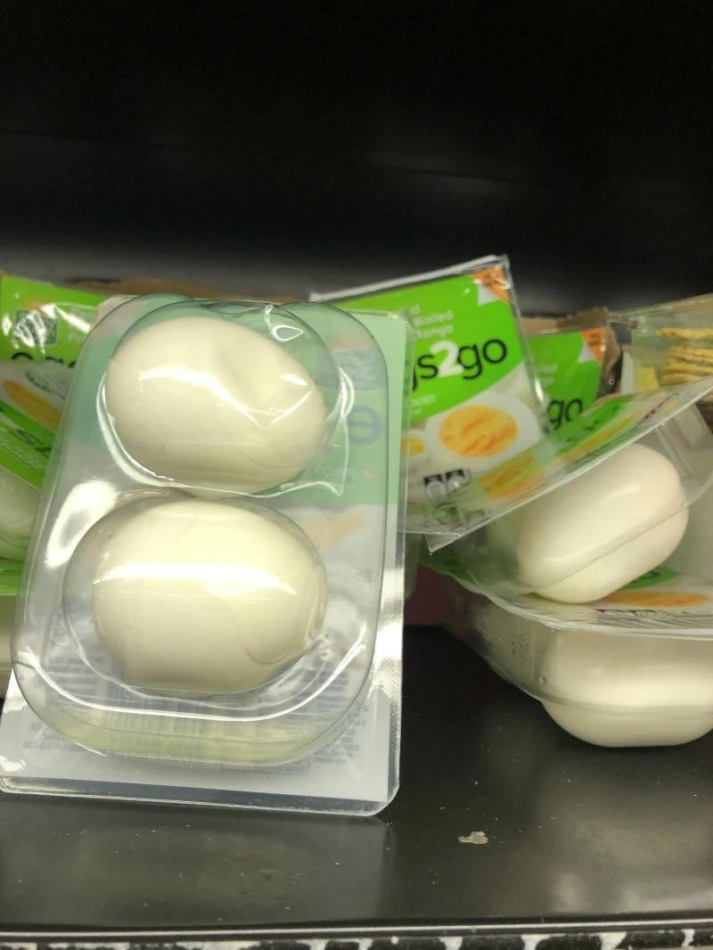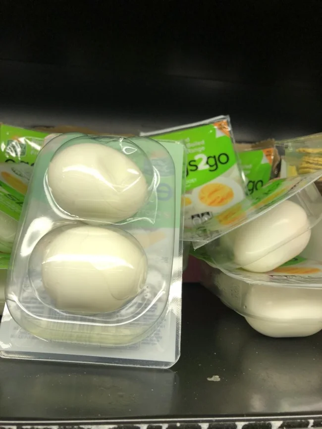 Уже сваренные и очищенные яйца в индивидуальной упаковке