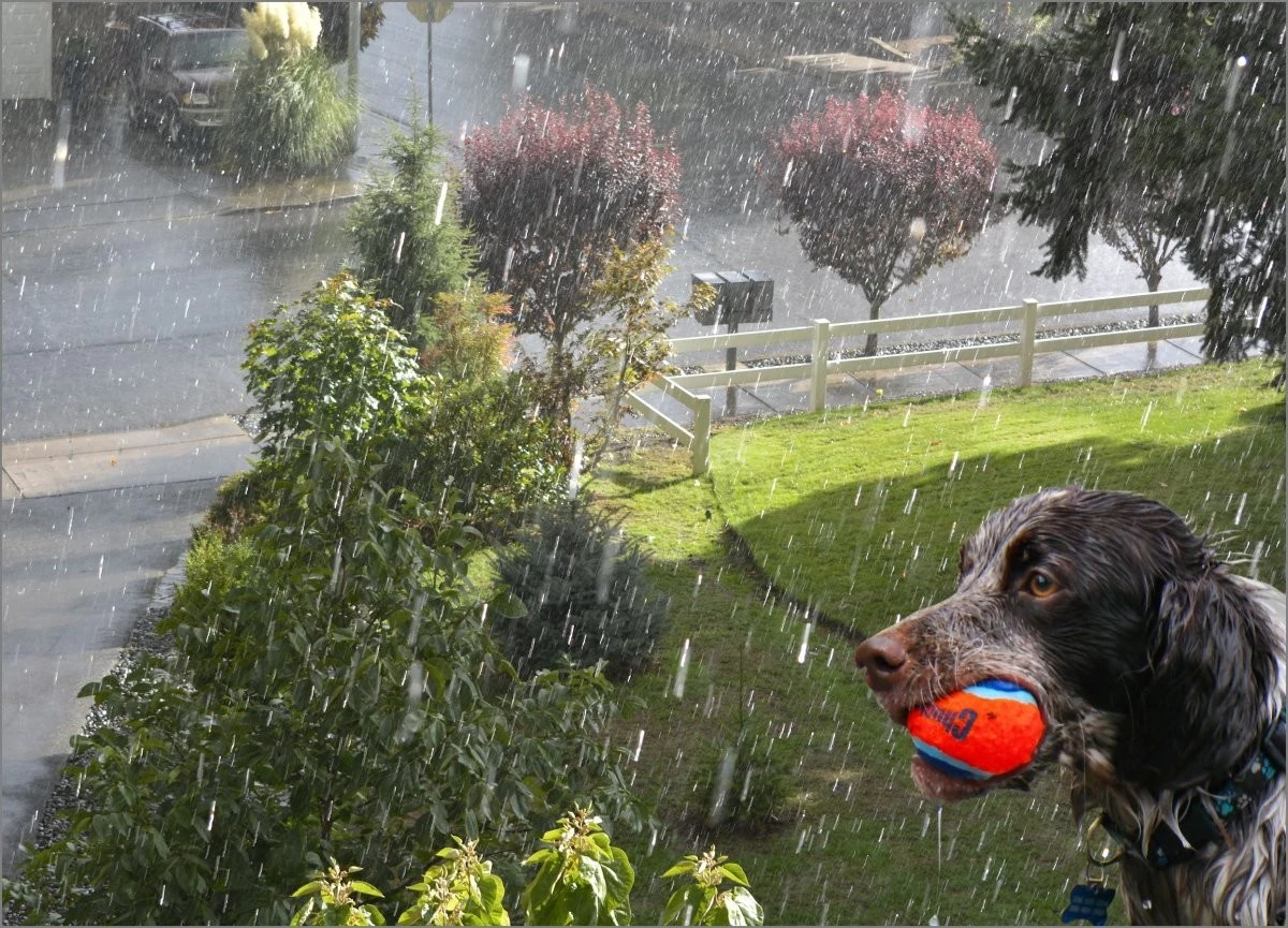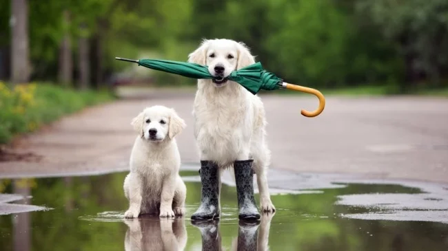 А для наших самых верных и преданных братьев меньших дождик – это ерунда. Не отменять же из-за такой мелочи долгожданную прогулку?