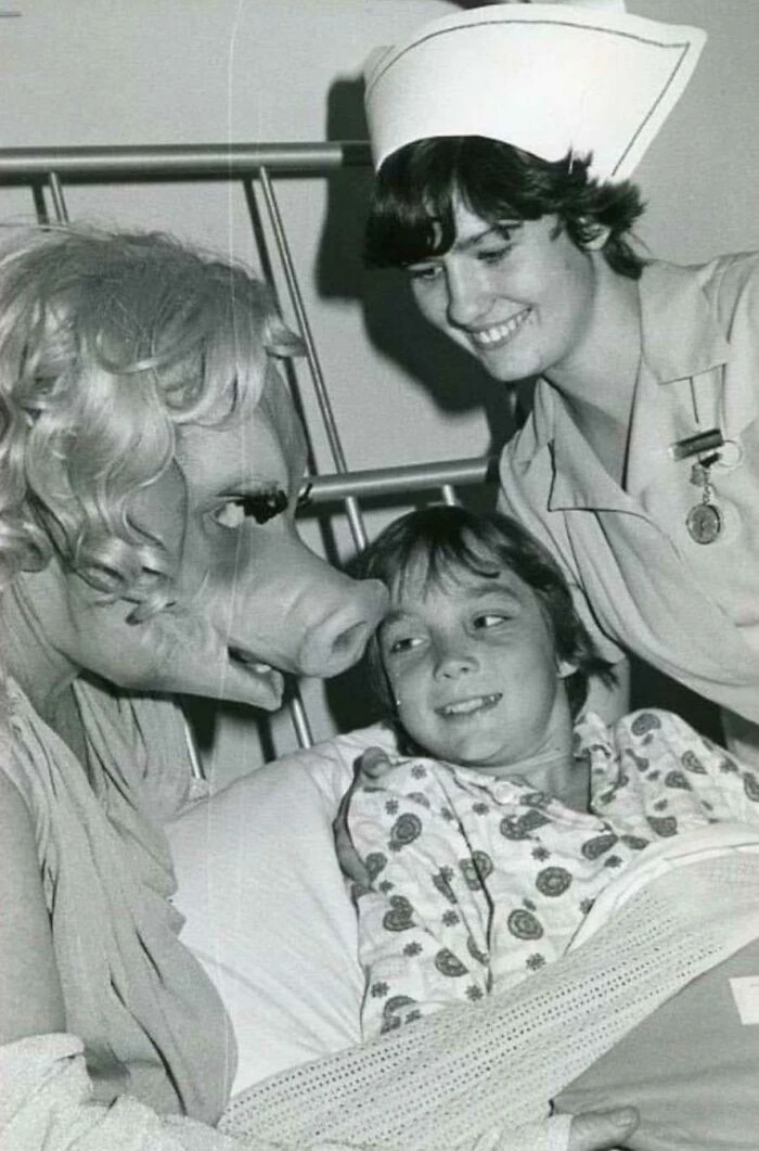 18. Мисс Пигги из «Маппет-шоу» развлекает пациентов детской больницы