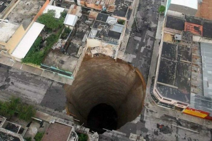 5. Карстовая воронка в Гватемале, в которую провалилась целая текстильная фабрика