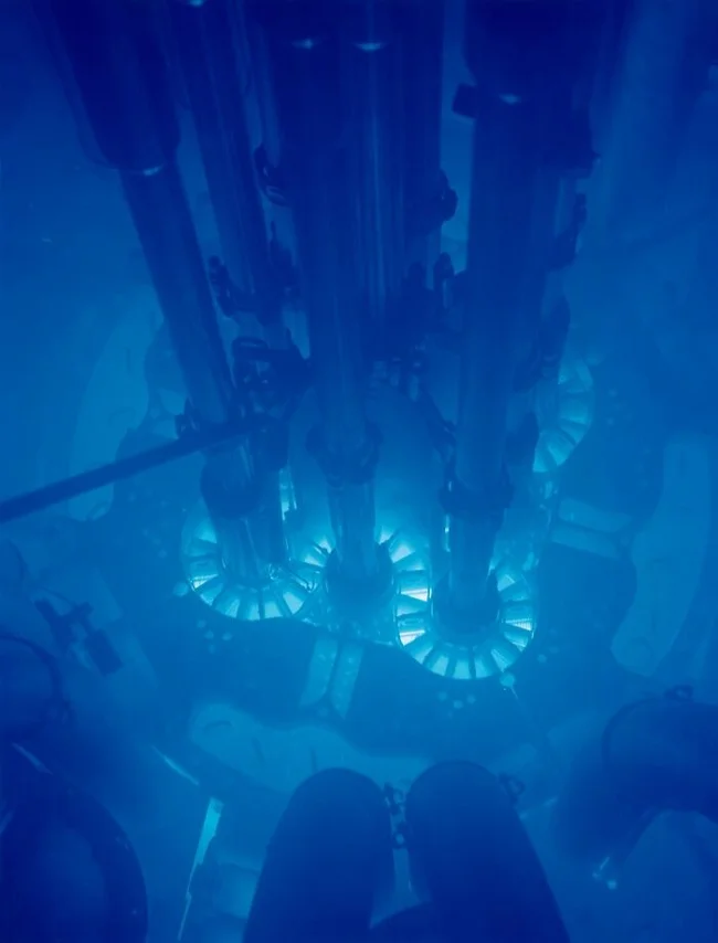24. Черенковское излучение (синий свет) внутри ядерного реактора