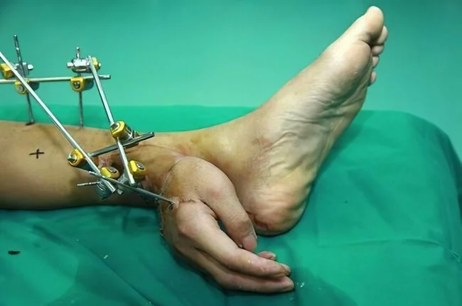 2. Врачи сохранили руку китайского фабричного рабочего, пришив ее к левой лодыжке