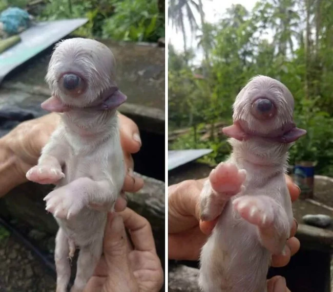 20. Щенок, который родился с одним глазом, двумя языками и без носа