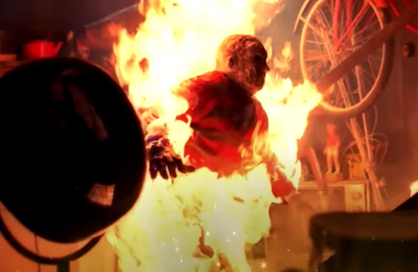 В другой сцене с горящим Фредди каскадер решил сымпровизировать и специально упал с лестницы, хотя этого в сценарии не было. В итоге за эту сцену каскадер получил приз за "Лучший трюк года".
