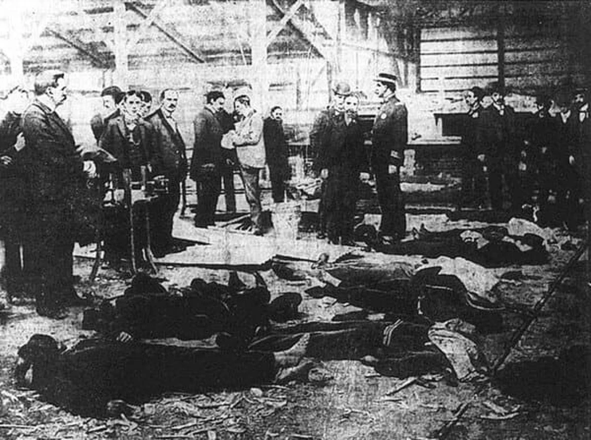 Множество людей собралось на крыше стеклодувной фабрики, чтобы посмотреть футбольный матч бесплатно. Крыша рухнула, а болельщики упали на печь. Погибло 23 человека, и ещё более 100 получили ранения, но игра продолжалась.