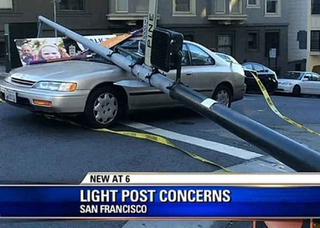 10. В 2015 году в Сан-Франциско фонарный столб высотой с трехэтажный дом настолько проржавел от мочи, что сломался и упал на стоявший рядом автомобиль