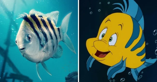 Вот как выглядит Флаундер из нового фильма в сравнении с собой же из мультфильмов