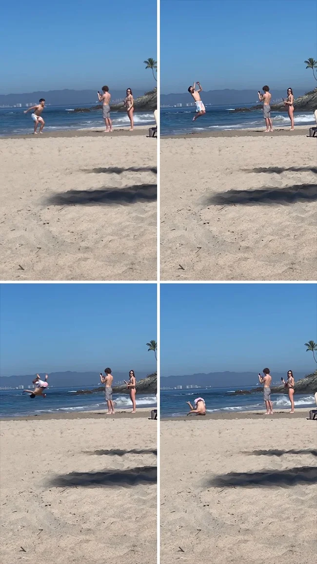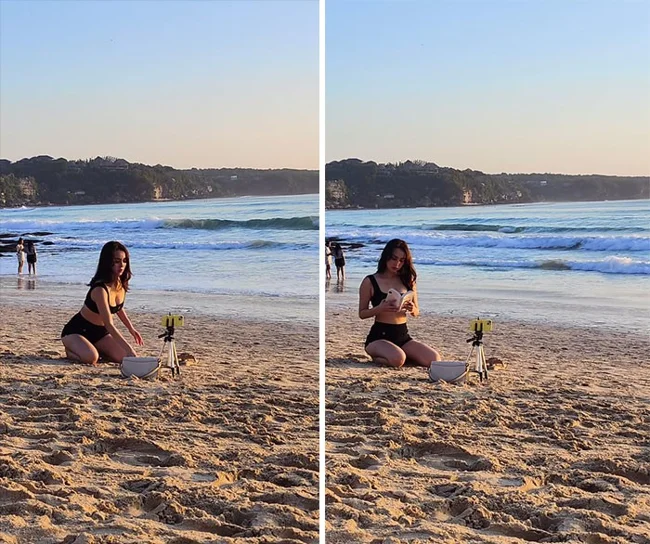 30. Девушка установила камеру, чтобы сфоткать, как она читает на пляже ![]()