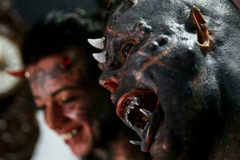 Татуировщик из Бразилии Мишель Праддо, известный как Человек-Сатана, и его супруга