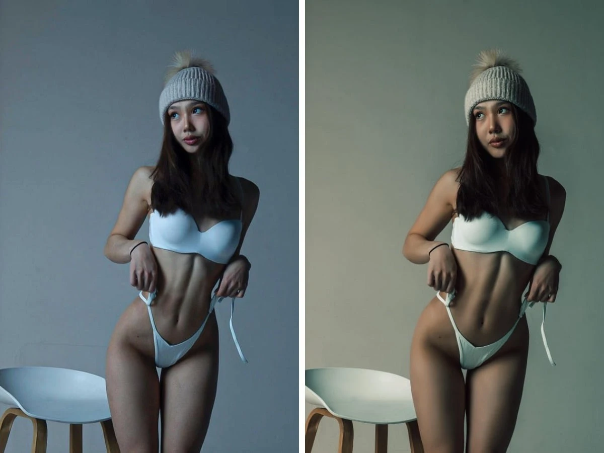 Помимо отличающейся цветокоррекции на странице модели можно заметить и более тонкие черты лица и талию.