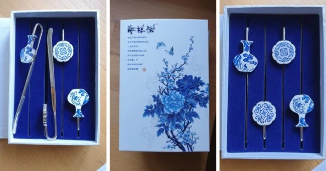 Это китайские закладки для книг. Металлический стержень помещается между страниц, а украшение попадает на корешок, и его видно, когда книга стоит на полке.
