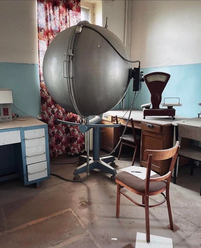 13. Что это за большая металлическая сфера на подставке с циферблатом и шнурами?