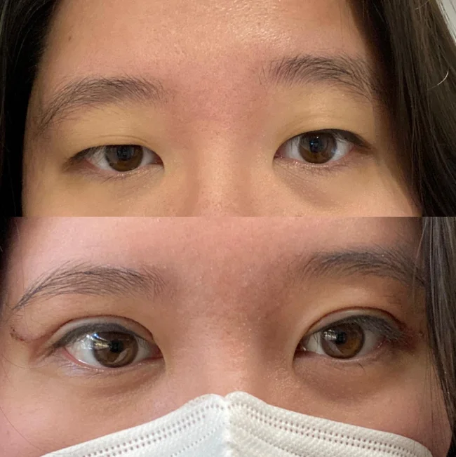 "Фото "после" сделано через ~10 дней после процедуры. Мне сняли швы на седьмой день после операции. Потребовалось около года, чтобы шрамы полностью исчезли, но так как шрам находится на линии сгиба моего глаза, он был практически не заметен". ![]()