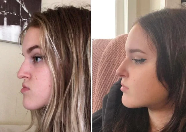 Девушка писала: "я не знаю, как назвать то, что со мной сделали врачи, поэтому объясню всё простыми словами. Моя верхняя челюсть была выдвинута вперед, а нижняя - сдвинута назад, и обе челюсти были немного наклонены вниз. Восстановление было не самым лучшим опытом, но оно пролетело так быстро!". На фото у неё немного отекли щёки.