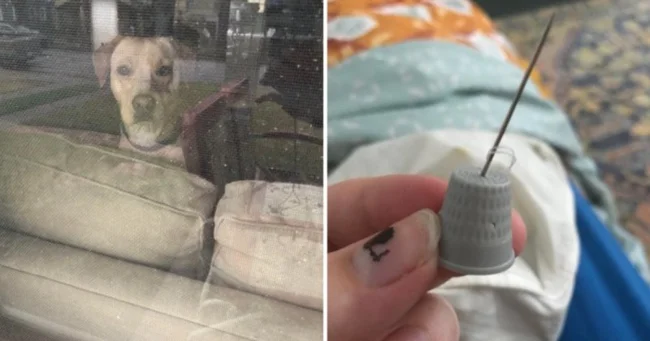 Носил наперсток, чтобы не колоть палец, но задняя часть иглы прошла прямо насквозь