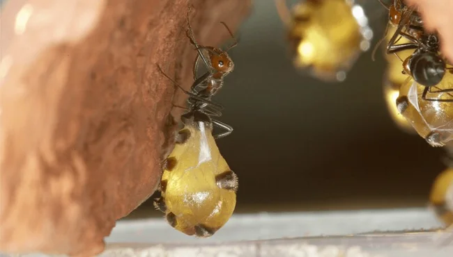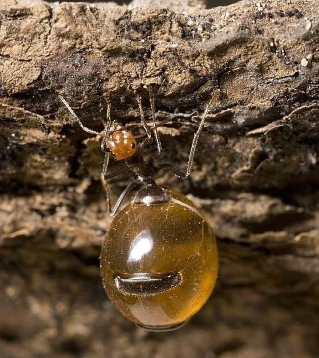 В какой-то момент брюшко медовых муравьев становится таким большим, что они не могут двигаться - поэтому они просто свисают с края муравейника, пока их собратья-муравьи не потребуют пищи. Большинство видов этих муравьев обитает в сухих или полузасушливых регионах Австралии, США, Мексики и в Африке. Искать пищу в этих местах непросто, поэтому муравьи производят сладкий нектар в качестве адаптации к выживанию в трудных условиях. Когда-то эти муравьи даже служили десертом для австралийских аборигенов.