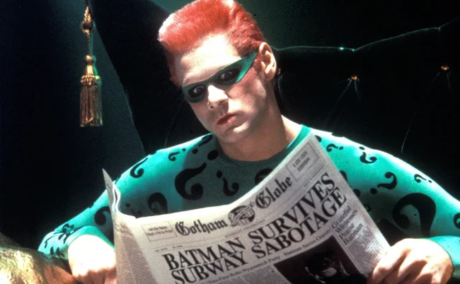 4. Кстати, еще кое-что о летучих мышах. Как вы уже знаете, Эйс Вентура терпеть не может летучих мышей. А ведь примерно в то же время он играл Загадочника в фильме "Бэтмен навсегда", где он был врагом Бэтмена, то есть человека-летучей мыши.